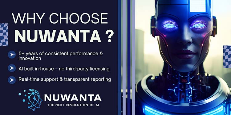 Choosing "NUWANTA" means partnering with a forward-thinking team that’s as invested in your success as you are. Together, we’ll unlock the full potential of AI to Revolutionize Your Earnings.